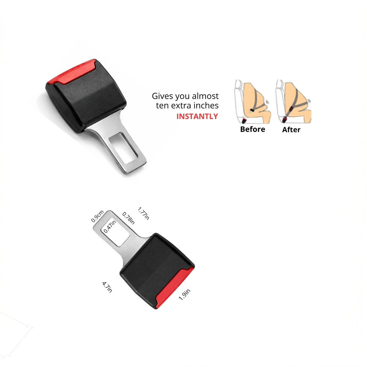 Designed for simplicity, the buckle extension can insert directly into the seat belt slot without any tools or installation process. In Adition It locks instantly and can remove easily when not require, making it a user-friendly solution for all drivers.
