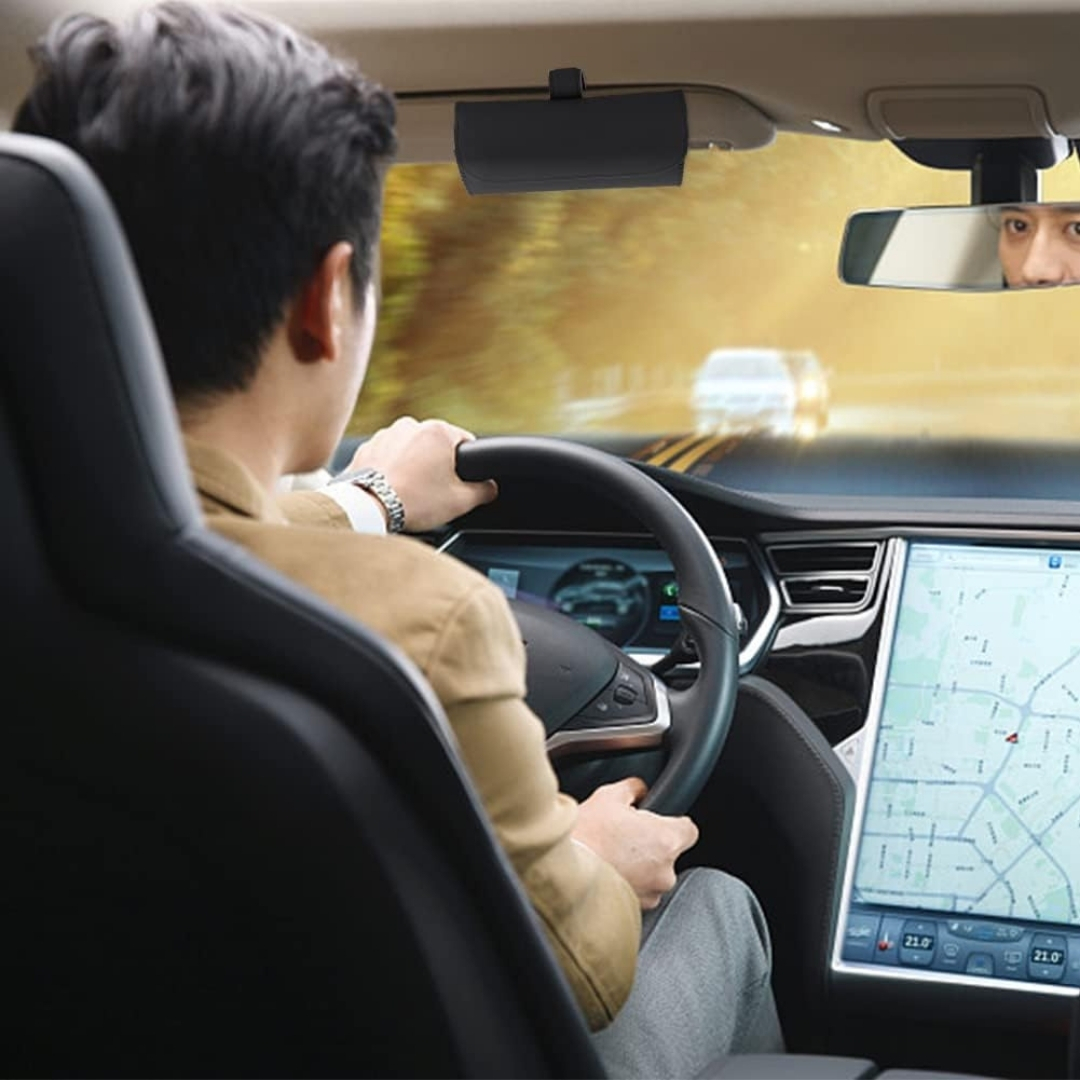 Its back clip design attaches firmly to the sun visor without obstructing the driver’s view, making it both practical and reliable for everyday use. In addition to glasses, it can also store small items like cards, coins, keys, and receipts, helping keep your car organized.